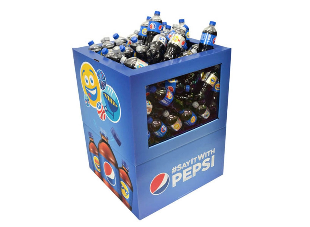 پپسی در کمپین های تابستانی خود از دامپ بین های عظیم به شکل بطری نوشابه استفاده می کند. این استندها نه تنها محصول را نمایش می دهند، بلکه خودشان به یک نماد تبلیغاتی تبدیل می شوند. - کادبری (Cadbury)