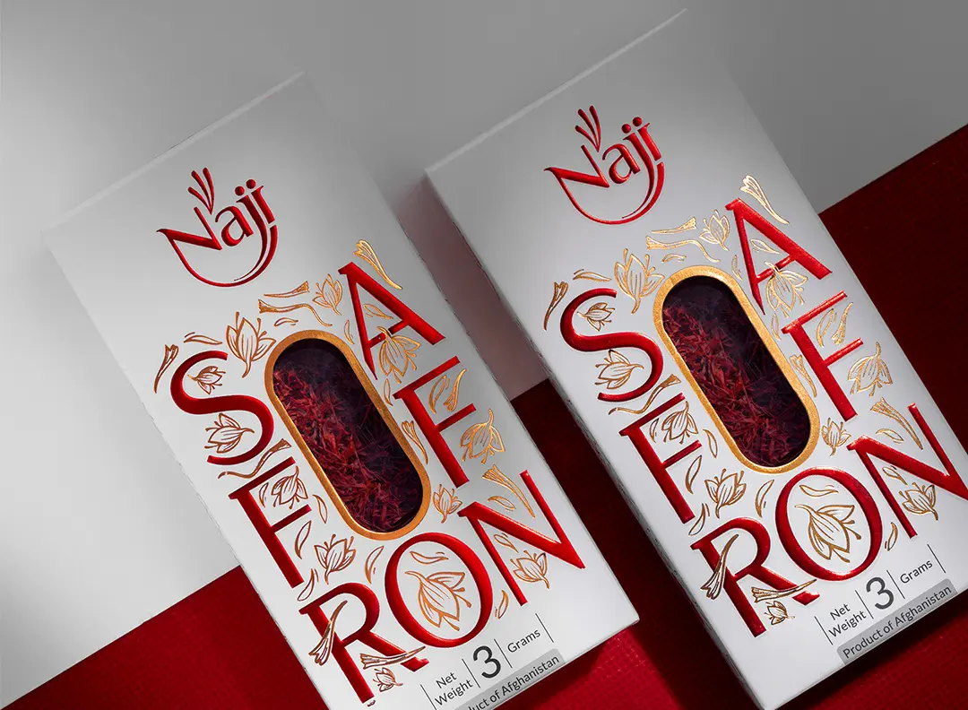 خدمات اوج نیلی در چاپ بسته بندی زعفران تیراژ کم تیراژ کم