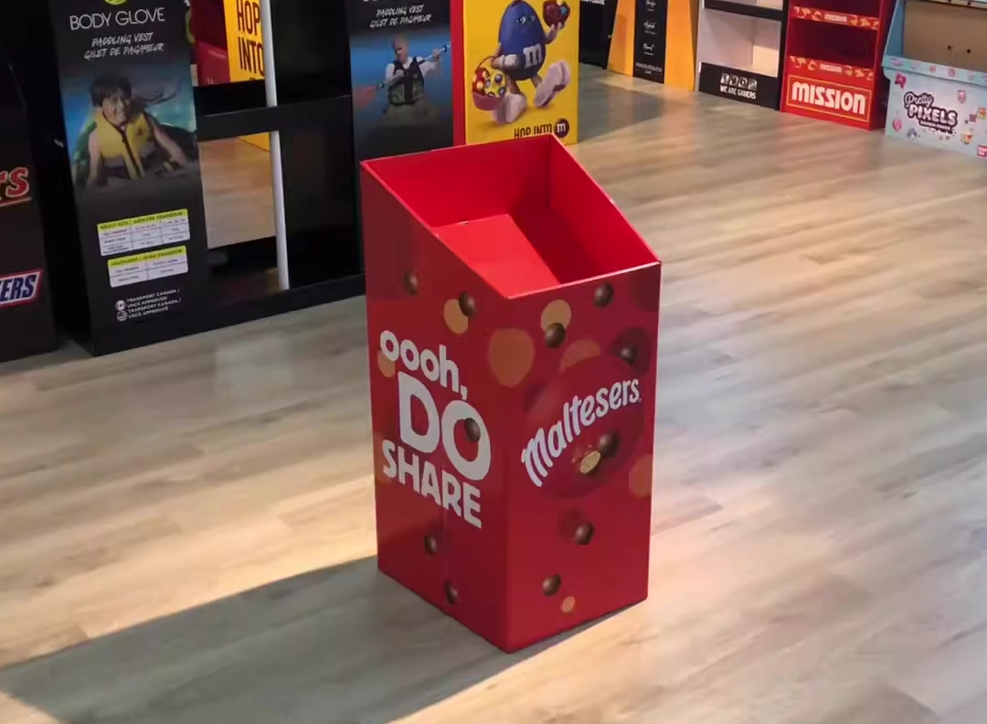 پپسی در کمپین های تابستانی خود از دامپ بین های عظیم به شکل بطری نوشابه استفاده می کند. این استندها نه تنها محصول را نمایش می دهند، بلکه خودشان به یک نماد تبلیغاتی تبدیل می شوند. - کادبری (Cadbury)
